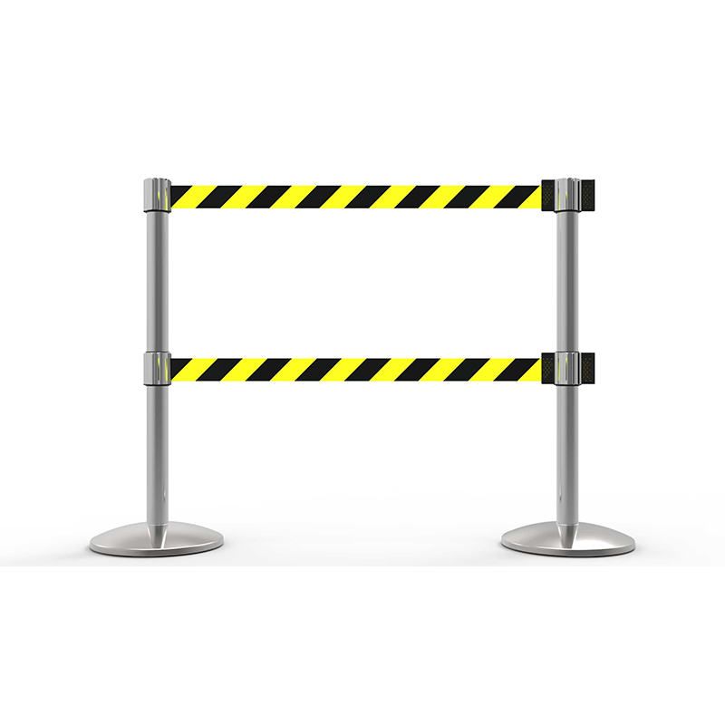 QLine Dual Belt Barrier Set, Polished Chrome Post, Yellow/Black Diagonal Stripe