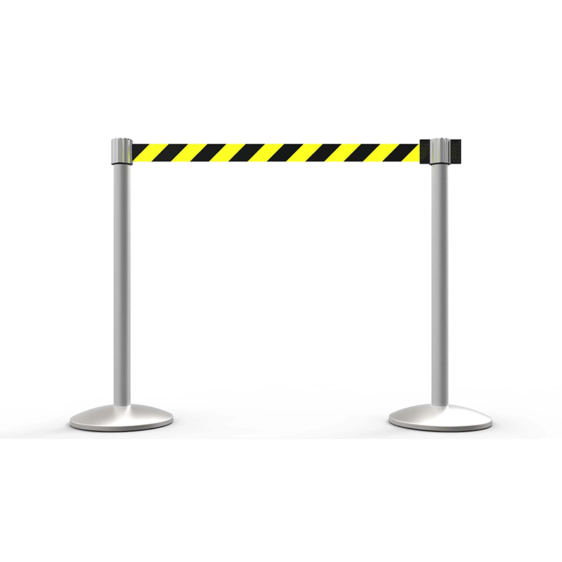 QLine Retractable Belt Barrier Set, Matte Post, Yellow/Black Diagonal Stripe