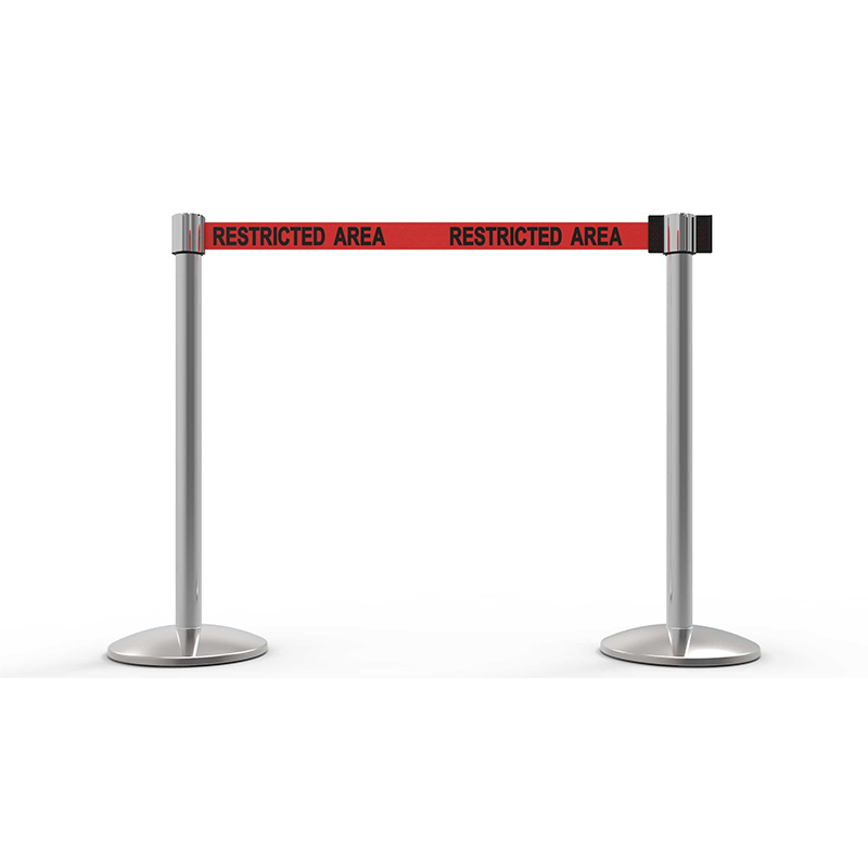 QLine Retractable Dual Belt Barrier Set, Matte Post, Red "Restricted Area"