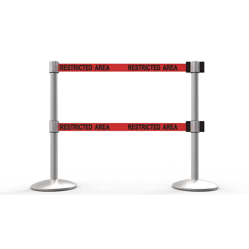 QLine Retractable Dual Belt Barrier X2, Matte Post, Red "Restricted Area"