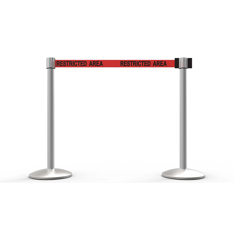 QLine Retractable Belt Barrier X2, Matte Post, Red "Restricted Area"