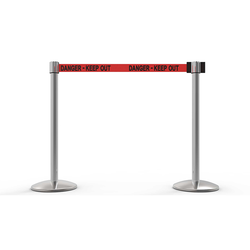 QLine Retractable Belt Barrier Set, Matte Post, Red "Danger - Keep Out"