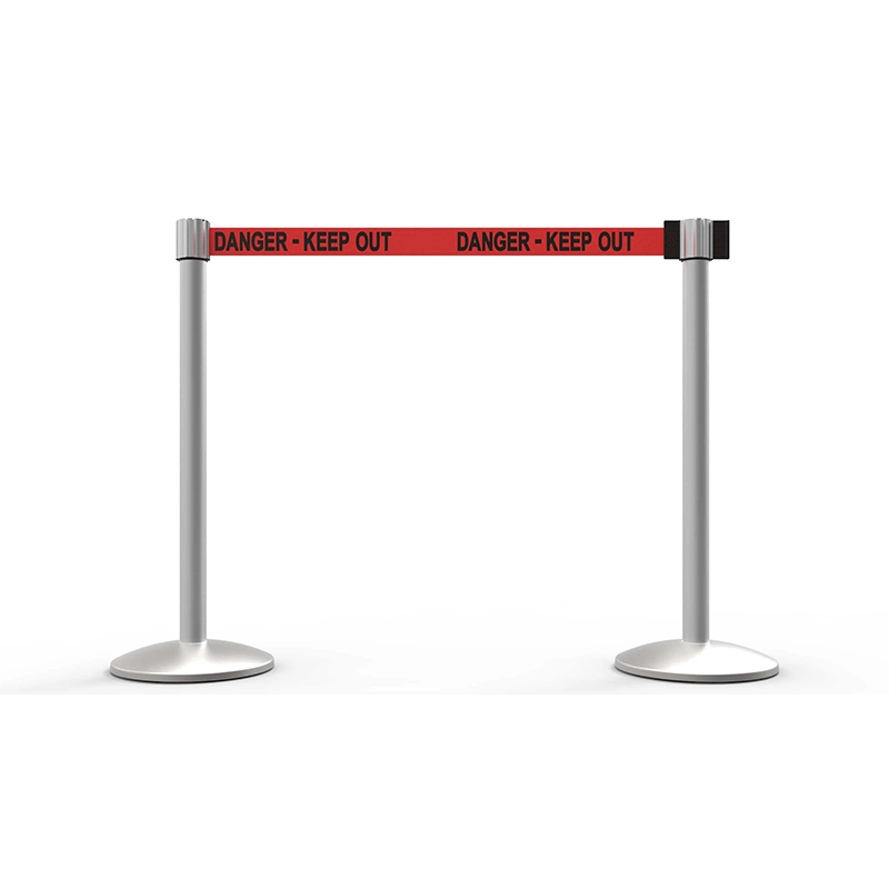 QLine Retractable Belt Barrier X2, Matte Post, Red "Danger - Keep Out"
