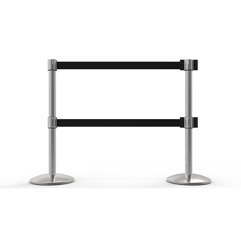 QLine Retractable Dual Belt Barrier X2, Black Post, Blank Black Belt