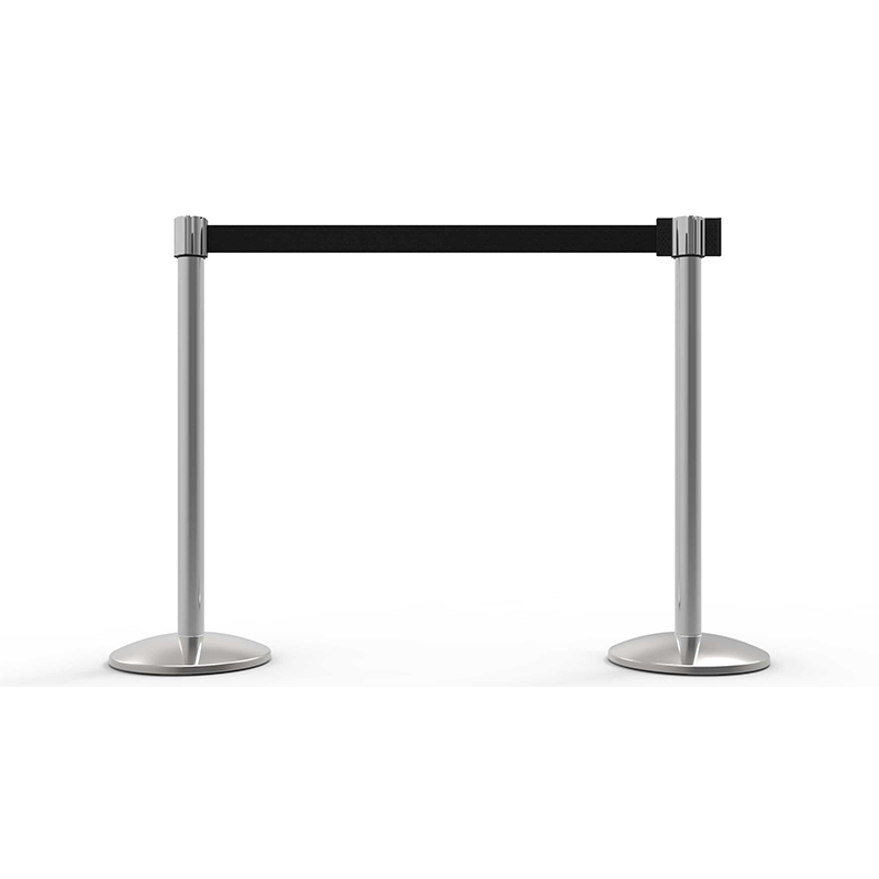 QLine Retractable Dual Belt Barrier Set, Polished Chrome Post, Blank Black Belt