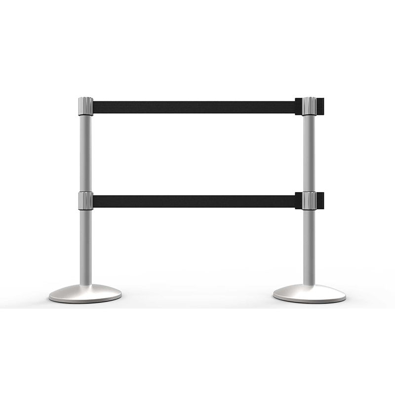 QLine Retractable Dual Belt Barrier X2, Matte Post, Blank Black Belt