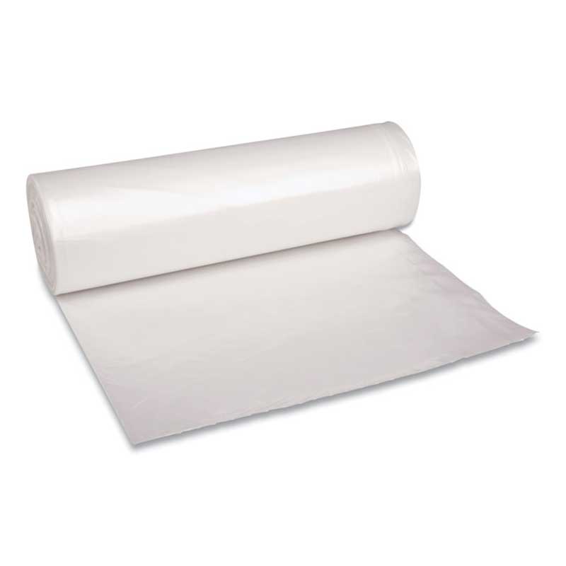 Can liner with equivalent strength of 2.0 mil liner. Perforated roll for easy dispensing. Coreless rolls save space and material.