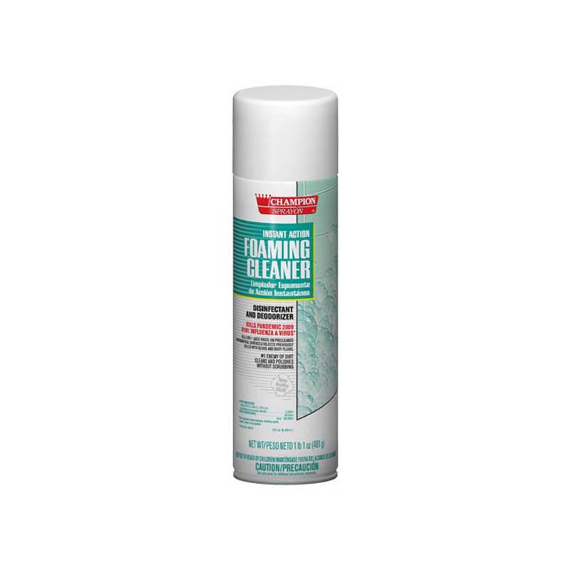 Champion Sprayon® Foaming Cleaner Disinfectant is a powerful hospital-type quaternary disinfectant formulated to clean, disinfect, and deodorize hard nonporous surfaces in a single step. The rich foaming formula clings to vertical and horizontal surfaces, allowing active ingredients to penetrate soils and eliminate bacteria, viruses, fungi, and odor-causing microorganisms.