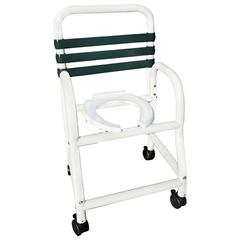 Introducing the Deluxe New Era Patented Infection Control Shower Chair, now available with a sophisticated Forest Green soft-touch back. With its spacious 18" internal width and deluxe elongated open front seat, this chair offers unparalleled comfort and accessibility without the need for a commode pail, streamlining your bathing routine. Maneuver with ease using the 3" twin all-locking casters, ensuring stability and mobility in any bathroom environment. With a weight capacity of 310 lbs, this chair is designed to accommodate users of all sizes.
