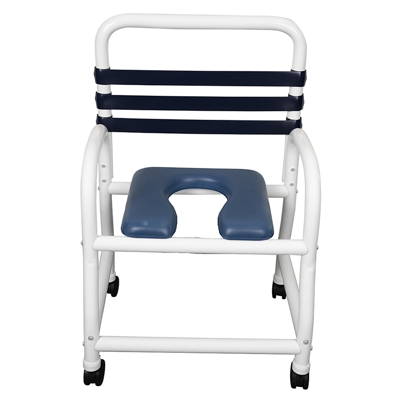 Introducing the Deluxe New Era Patented Infection Control Shower Commode Chair, engineered for unparalleled comfort and hygiene. With an expansive 22" internal width and an open front removable soft seat, this chair ensures optimal accessibility and comfort for users of all sizes. Say goodbye to the hassle of dealing with commode pails – our innovative design eliminates the need, streamlining your bathing routine. Maneuver with ease using the 3" twin all-locking casters, providing stability and mobility in any bathroom environment. With an impressive weight capacity of 385 lbs, this chair is built to accommodate users with confidence.