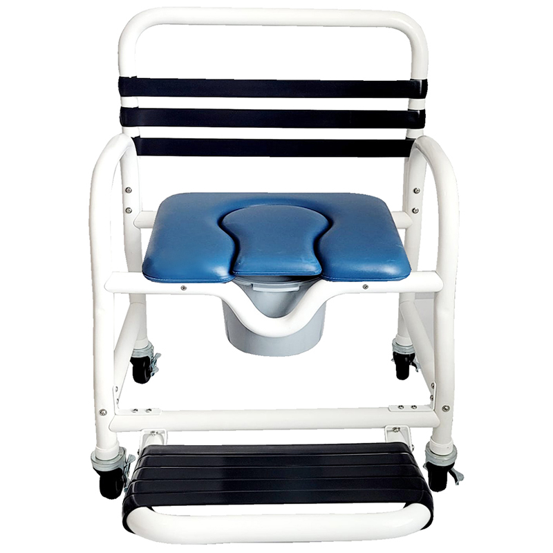 Introducing the Deluxe New Patented Infection Control Hygienic Access Shower Commode Chair, redefining comfort and hygiene in your bathing routine. With a generous 26" internal width and an open front removable soft seat, this chair ensures exceptional comfort and accessibility for users of all sizes. The convenient inclusion of a commode pail streamlines waste management, enhancing your bathing experience. Enjoy added relaxation with the soft-touch folding footrest, providing support and comfort throughout your shower. Maneuver with ease using the 3" twin all-locking casters, ensuring stability and mobility in any bathroom setting.