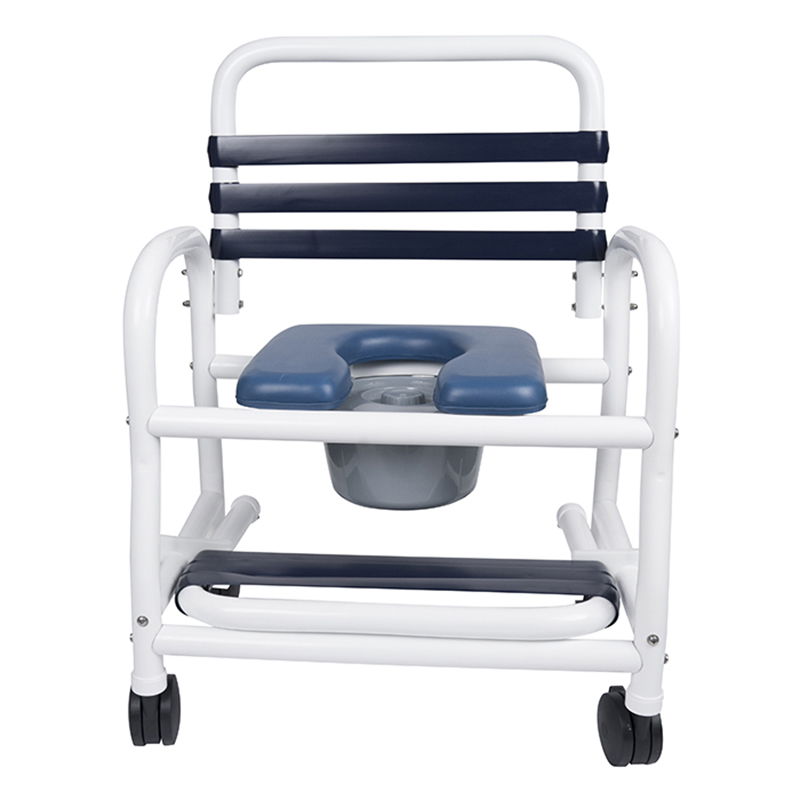 Introducing the pinnacle of comfort and hygiene: the Deluxe New Era Patented Infection Control Shower Commode Chair. With an expansive 26" internal width and an open front removable soft seat, this chair ensures unparalleled comfort and accessibility for users of all sizes. Simplify your bathing routine with the included commode pail, offering convenient waste management. Experience ultimate relaxation with the soft-touch slide-out footrest, providing support and comfort throughout your shower. Maneuver effortlessly with the 4" twin all-locking casters, offering stability and mobility in any bathroom setting.