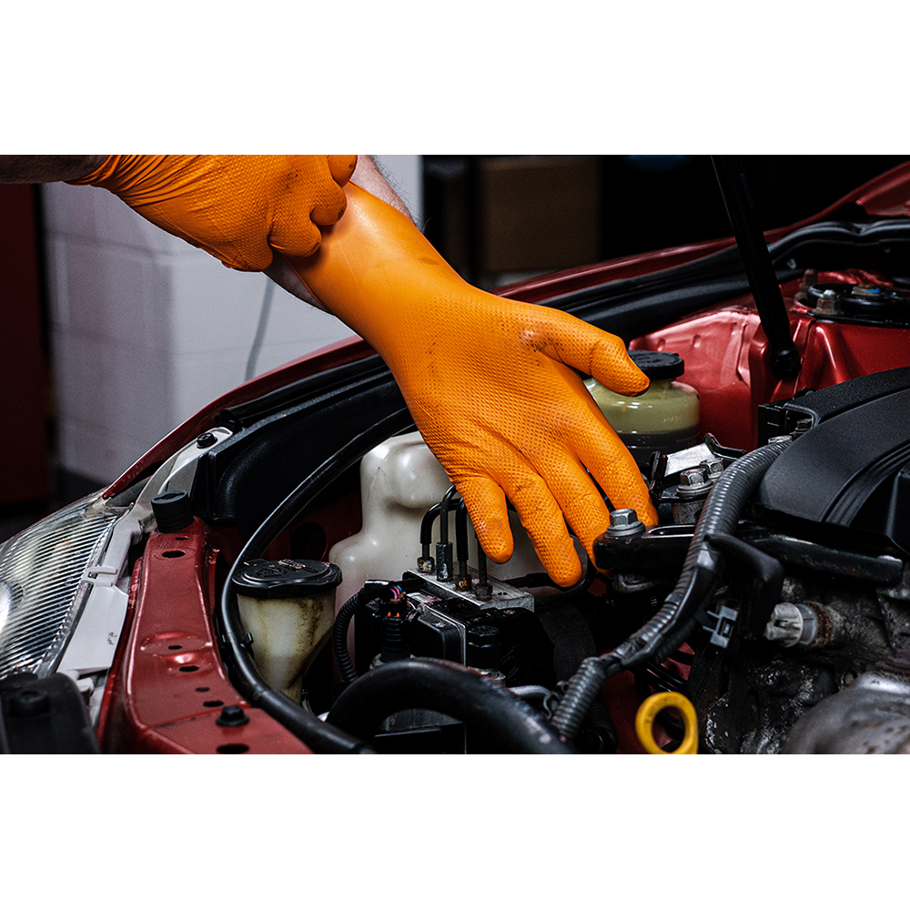 Tiger Grip Nitrile Gloves 8-MIL Thick offer unmatched durability and protection for demanding tasks. Designed with a raised diamond texture, these gloves provide superior grip, even in wet or oily conditions. Their 8-mil thickness ensures excellent chemical resistance and long-lasting performance, making them ideal for industrial, automotive, and maintenance work. Made from a proprietary nitrile formula, they are both powder-free and latex-free, reducing the risk of allergic reactions. The Hi-Vis Orange color enhances visibility in low-light or dark work areas, improving safety. Combining strength, comfort, and reliability, Tiger Grip gloves are a trusted choice for professionals who need consistent performance.