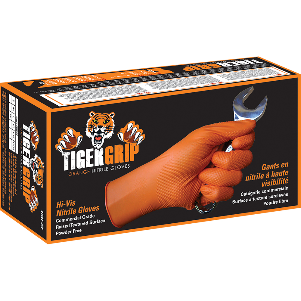 Tiger Grip Nitrile Gloves 8-MIL Thick offer unmatched durability and protection for demanding tasks. Designed with a raised diamond texture, these gloves provide superior grip, even in wet or oily conditions. Their 8-mil thickness ensures excellent chemical resistance and long-lasting performance, making them ideal for industrial, automotive, and maintenance work. Made from a proprietary nitrile formula, they are both powder-free and latex-free, reducing the risk of allergic reactions. The Hi-Vis Orange color enhances visibility in low-light or dark work areas, improving safety. Combining strength, comfort, and reliability, Tiger Grip gloves are a trusted choice for professionals who need consistent performance.