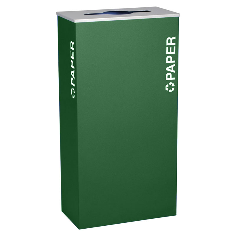 • Insert openings are dedicated to desired waste stream; 4.5" circle for Bottles/Cans & Plastic, 2" Paper Slot and an 8" square or half moon Trash opening.