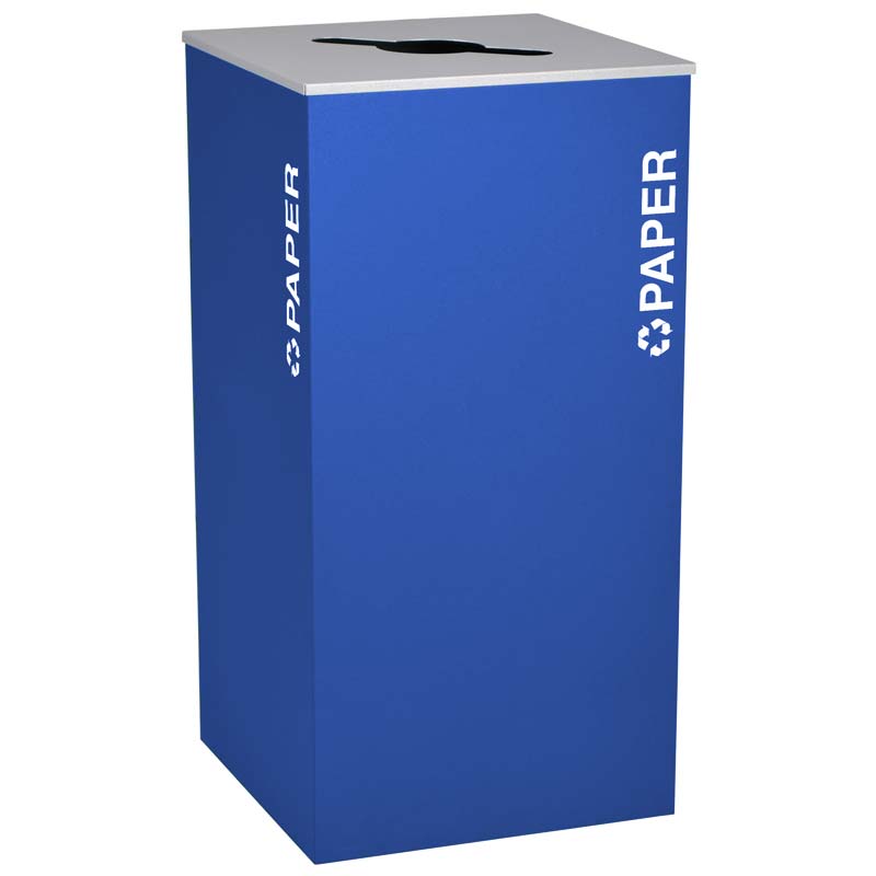 - Insert openings are dedicated to desired waste stream; 4.5" circle for Bottles/Cans & Plastic, 2" Paper Slot and an 8" square or half moon Trash opening.