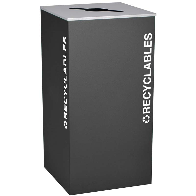 • Insert openings are dedicated to desired waste stream; 4.5" circle for Bottles/Cans & Plastic, 2" Paper Slot and an 8" square or half moon Trash opening.