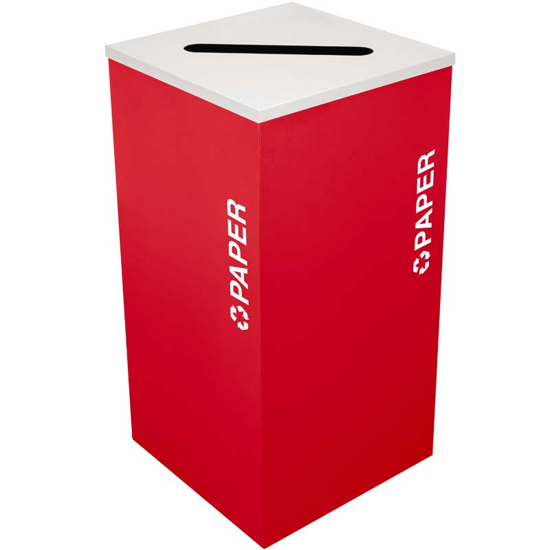 • Insert openings are dedicated to desired waste stream; 4.5" circle for Bottles/Cans & Plastic, 2" Paper Slot and an 8" square or half moon Trash opening.