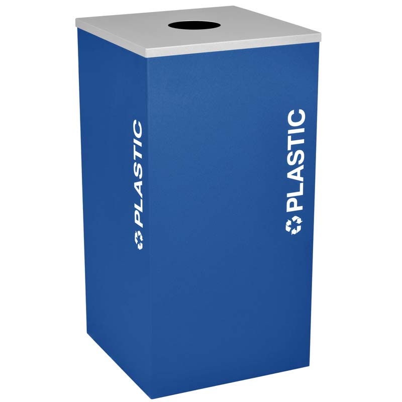 - Insert openings are dedicated to desired waste stream; 4.5" circle for Bottles/Cans & Plastic, 2" Paper Slot and an 8" square or half moon Trash opening.