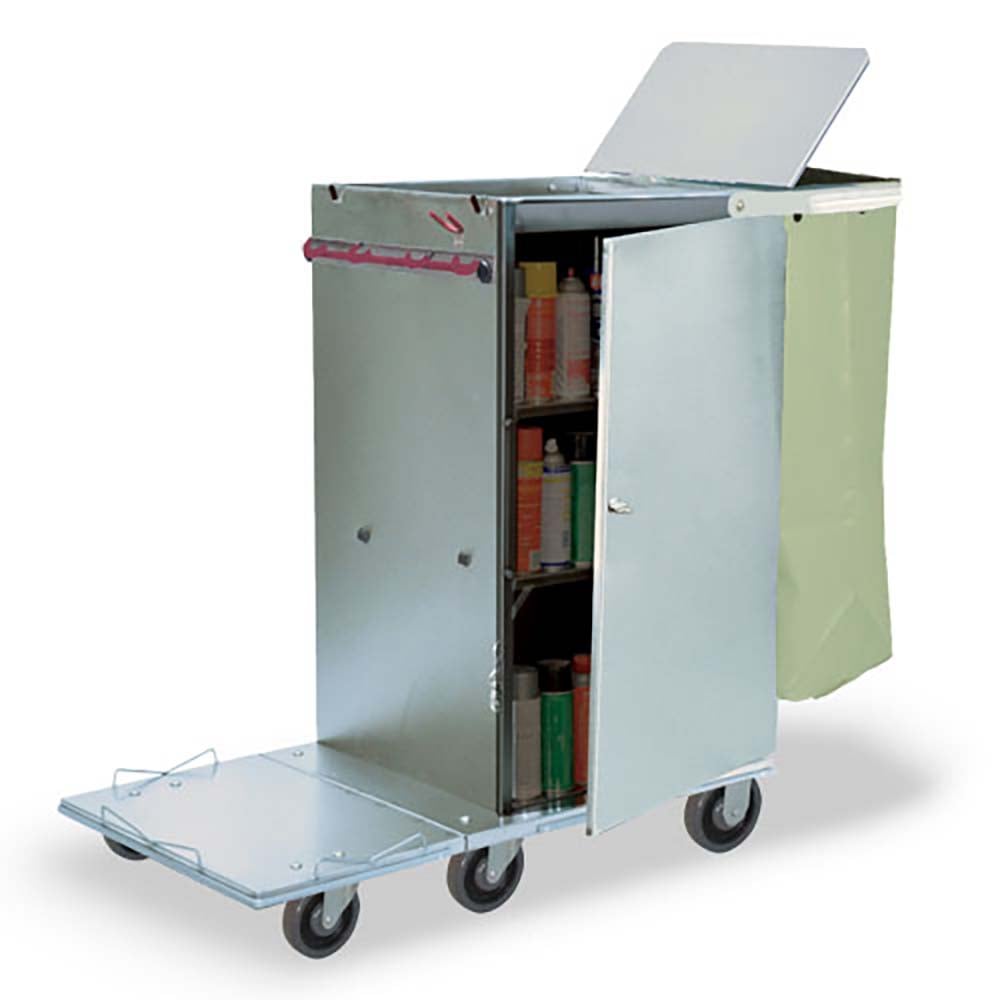 Constructed from heavy-duty commercial-grade materials, this cart is built to handle rigorous daily use in facilities such as hospitals, hotels, warehouses, and industrial sites. The oversized enclosed cabinet allows for organized storage of cleaning chemicals, tools, liners, and supplies, while integrated holders provide convenient access to mops, brooms, and other equipment.