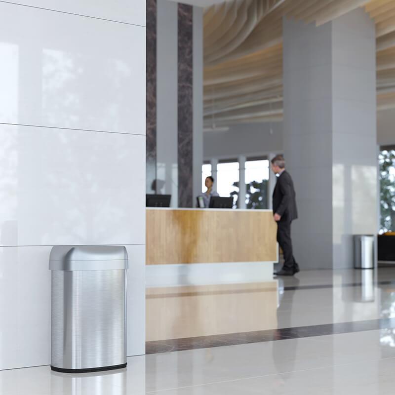 The 13 Gallon Dual-Deodorizer Open Top Trash Cans from HLS Commercial® are perfect for lobbies, dining areas, stores, or any high traffic venue. These open top cans feature a wide opening to easily accommodate large and bulky items, and include heavy-duty activated carbon filters designed to keep odors out of surrounding areas. Elegant, brushed stainless steel can body is fingerprint-proof, easy to clean, and complements any setting.