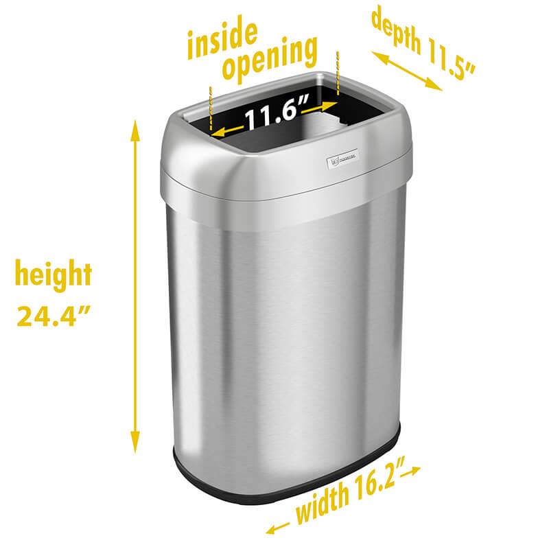13 Gallon Stainless Steel Dual Deodorizer Open Top Trash Can