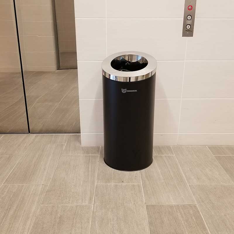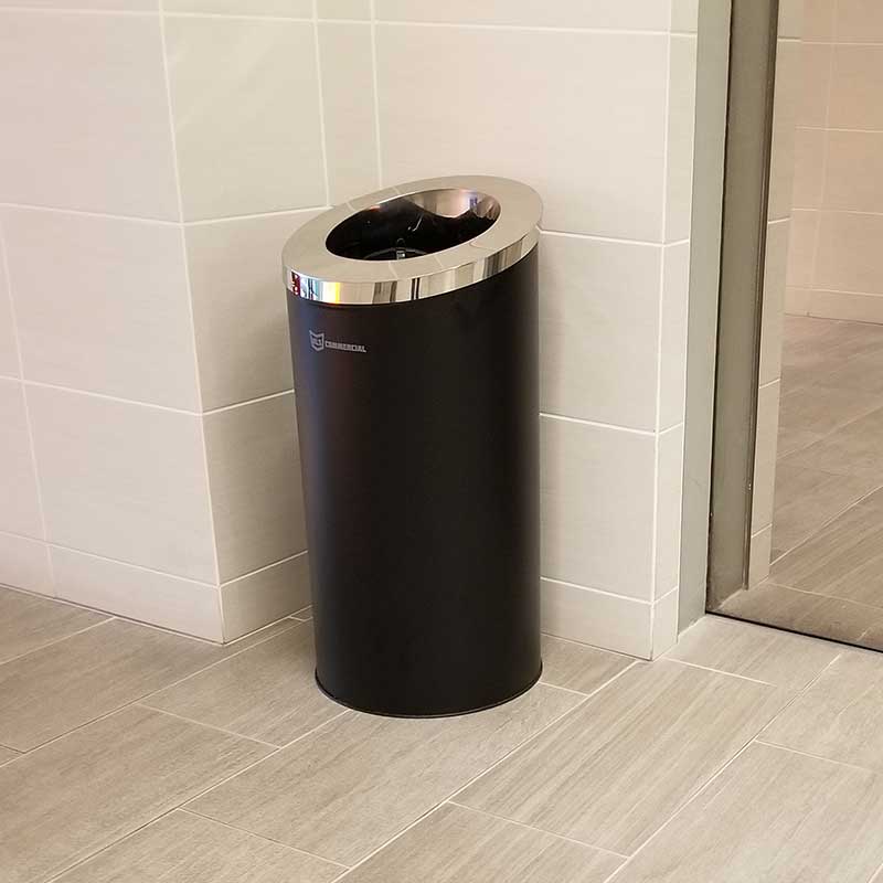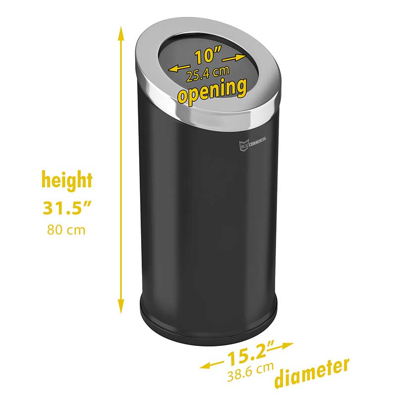 Offer quick and effective waste disposal in entry ways, lobbies, stores and more, with the HLS Commercial® Round Beveled Open Top Trash Can. The elegant, durable stainless steel complements any décor, while the slim, round shape saves space and the beveled top prevents accumulation of trash.