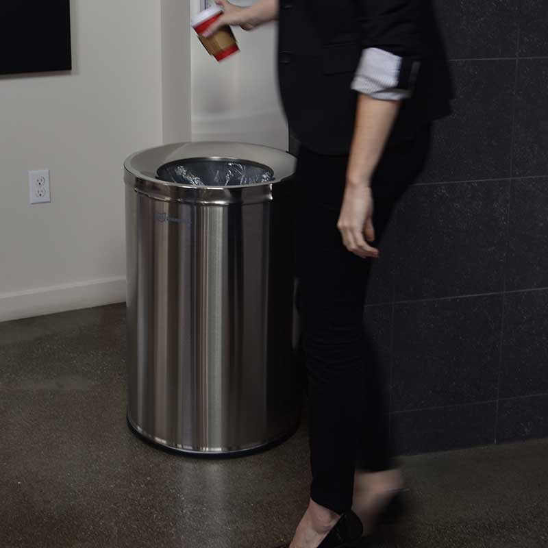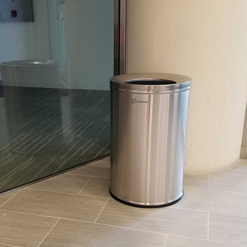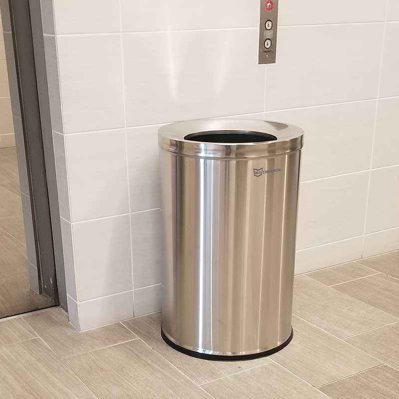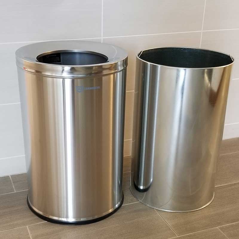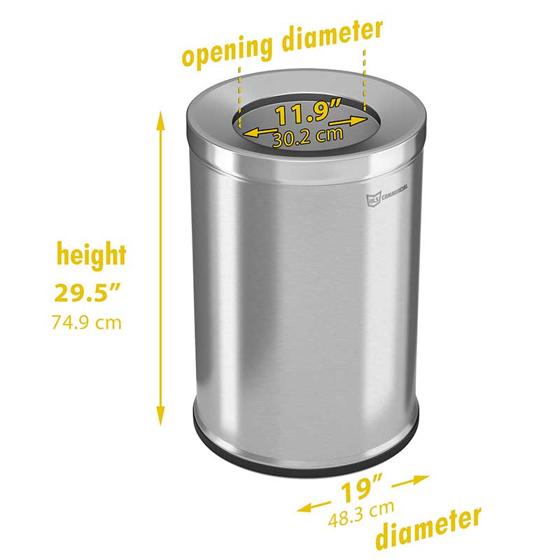 HLS Commercial 26 Gallon Stainless Steel Round Trash Can is the perfect waste receptacle for high-traffic areas like restroom, lobbies, hallways, and conference rooms. This 26 Gallon / 98 Liter receptacle features an easy to access, galvanized steel inner bucket with handles. The opening is 12” in diameter, making it easy to dispose of bulky trash on-the-go. The round profile is space-efficient and versatile. The brushed stainless steel body is fingerprint-proof, smudge-resistant, and easy to clean.