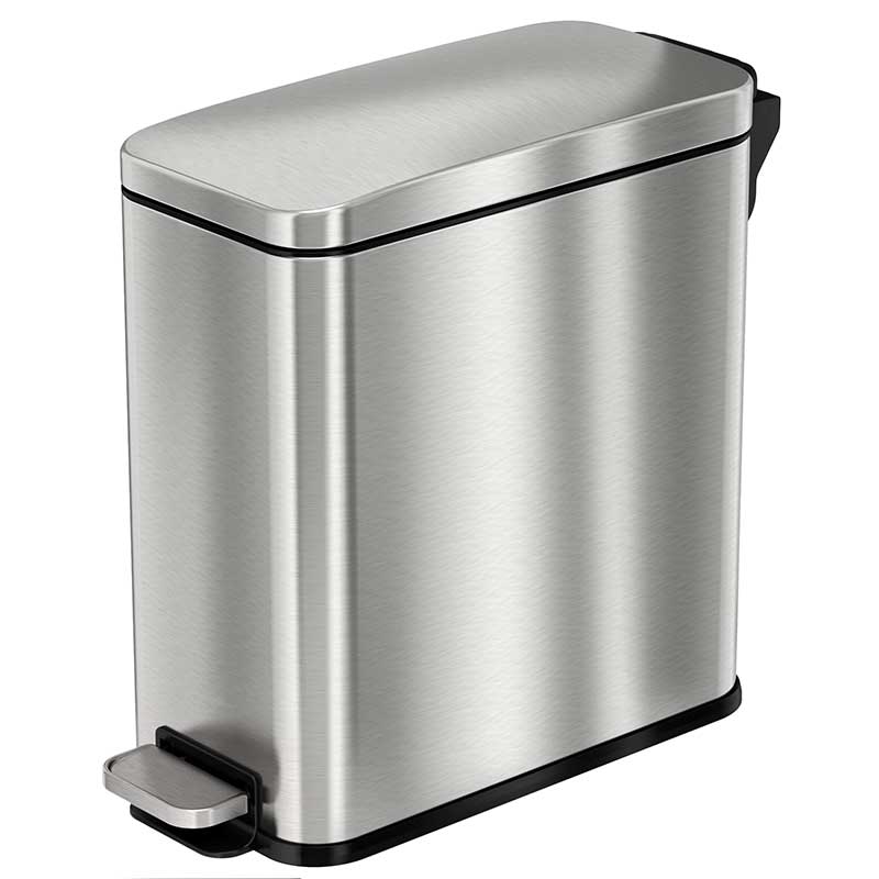 Designed to be as aesthetically pleasing as it is safe and easy to use, the elegant stainless steel bin complements any décor. The smooth and easy pedal requires minimal effort and is coupled with a soft and silent lid close. Emptying the trash is quick and clean with the removable inner bin. The odor filter compartment houses the easy to replace AbsorbX® odor filter to absorb and neutralize trash odors. The slim profile is space-efficient and versatile.