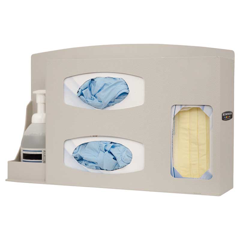 - Holds two boxes of gloves, one box of face masks, and one hand sanitizer bottle