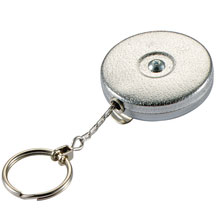 A high-quality clip-on key reel with 24" retractable pull of flat, linked steel chain. This Key Bak is ideal for security personnel, custodial staff, and those who use keys frequently.