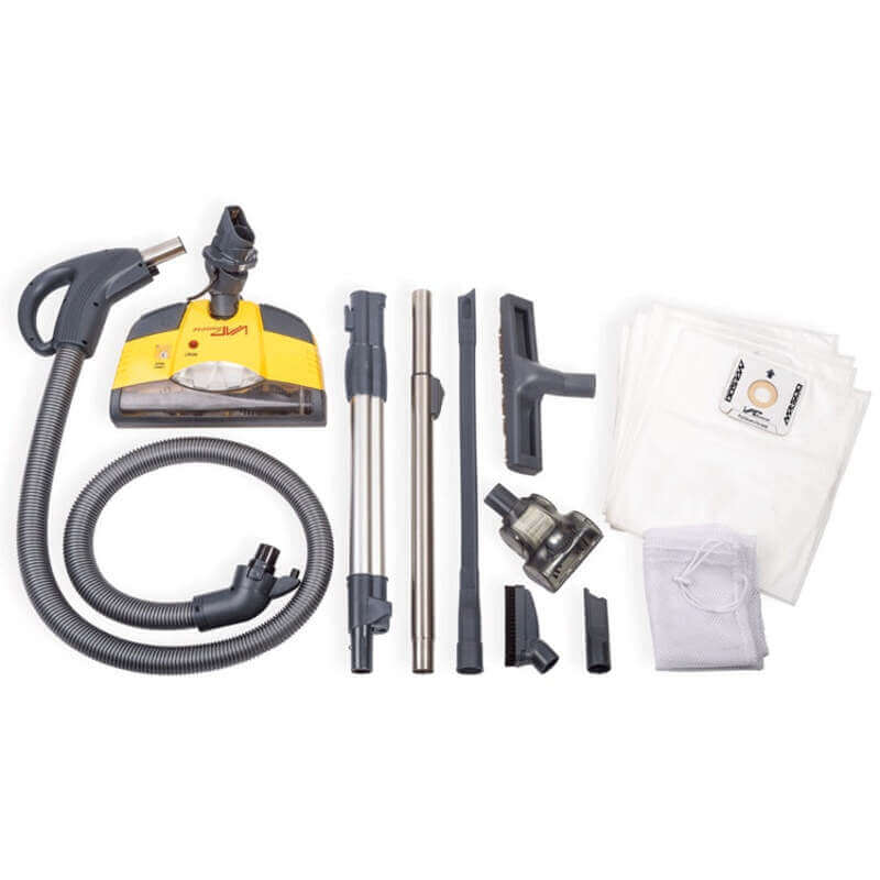 Vento features include 1400 watts total cleaning power, adjustable suction controls, extra large floor head with bright LED lighting, 200 watt electric rotating brush, brush jam reset button, ultra tight turn radius, quiet efficient operation, 26′ retractable power cord, on board tool storage, and the largest selection of included accessories.