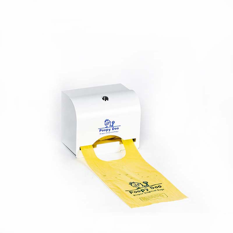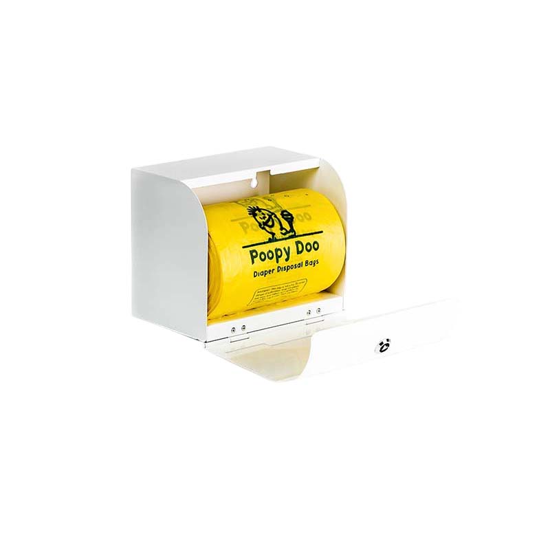 Larger capacity bag dispenser holds double the amount of bags, making it easy to dispose of smelly, soiled diapers; no matter where you are. Made from galvanized powder coated steel and can be easily mounted in any location or can simply rest on any flat surface. Ideal for hospitals, day care centers, doctor’s offices, stores, restaurants, hotels, airports, public buildings, and more. Holds 400 Poopy Doo disposal bags item part # PD-B-6-400.