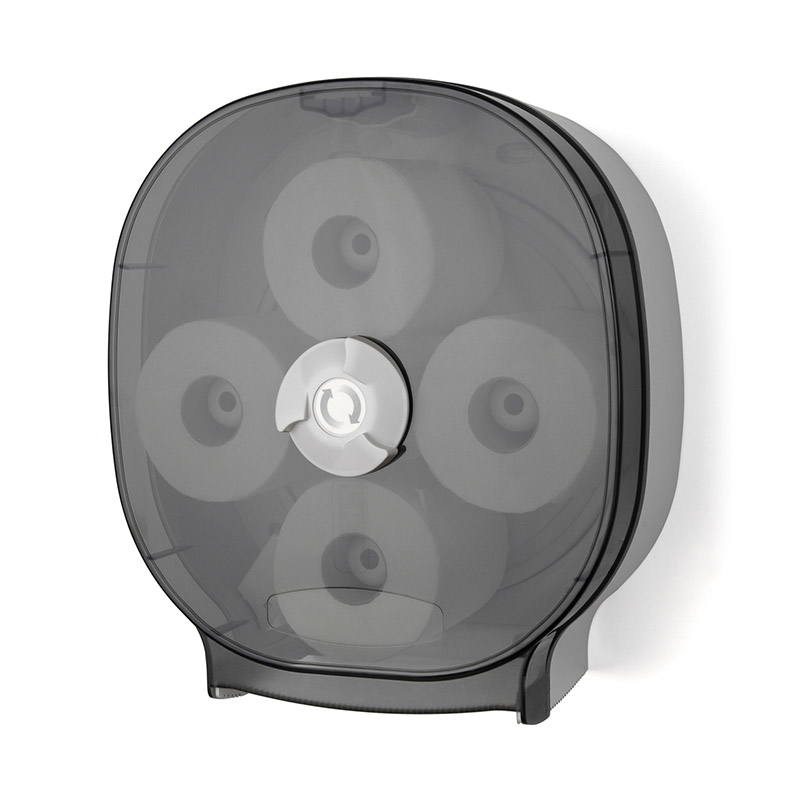 The 4-Roll Carousel Standard Tissue Dispenser features a roll advance mechanism that ensures that a roll must be completely used before switching to a new one. The easy loading dispenser is fully enclosed for maximum hygiene and the locked hinged cover eliminates theft and waste. This unit holds any standard household tissue roll with a 1-1/2″ core.