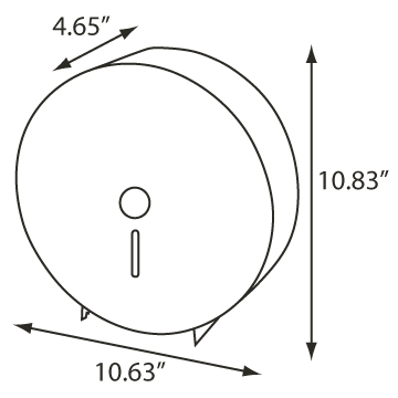 The Single 10 ” Jumbo Roll Tissue Dispenser offers a simplistic design with modern appeal. The cover and back are hinged together, making the unit one piece. A front window allows for easy view of paper supply. The RD0346 holds up to a 10″ roll with a 2-1/4″ core, and works with cores as small as 1-3/4″.
