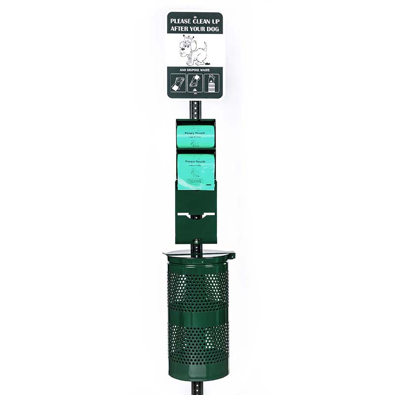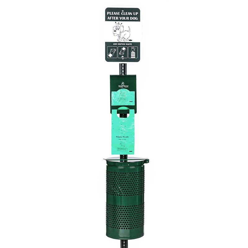 - Easily dispensed pet waste bags encourage people to clean up after their pets