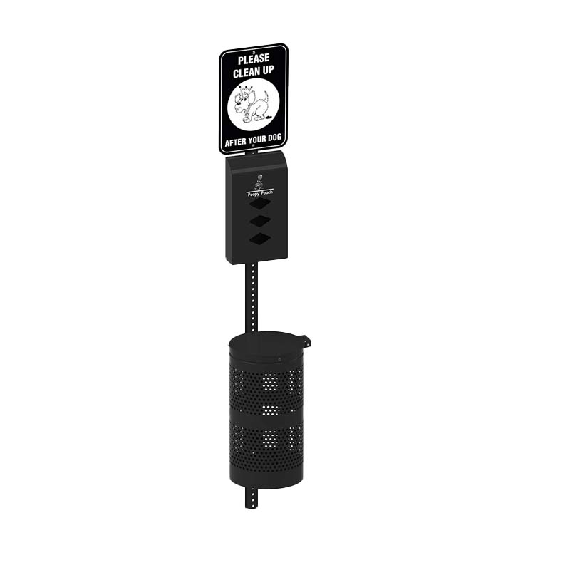 - The combination trash receptacle and pet waste bag dispenser encourages a cleaner area