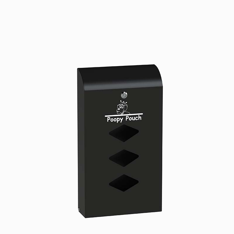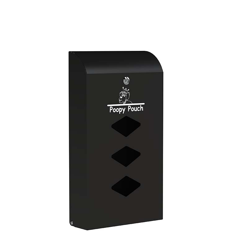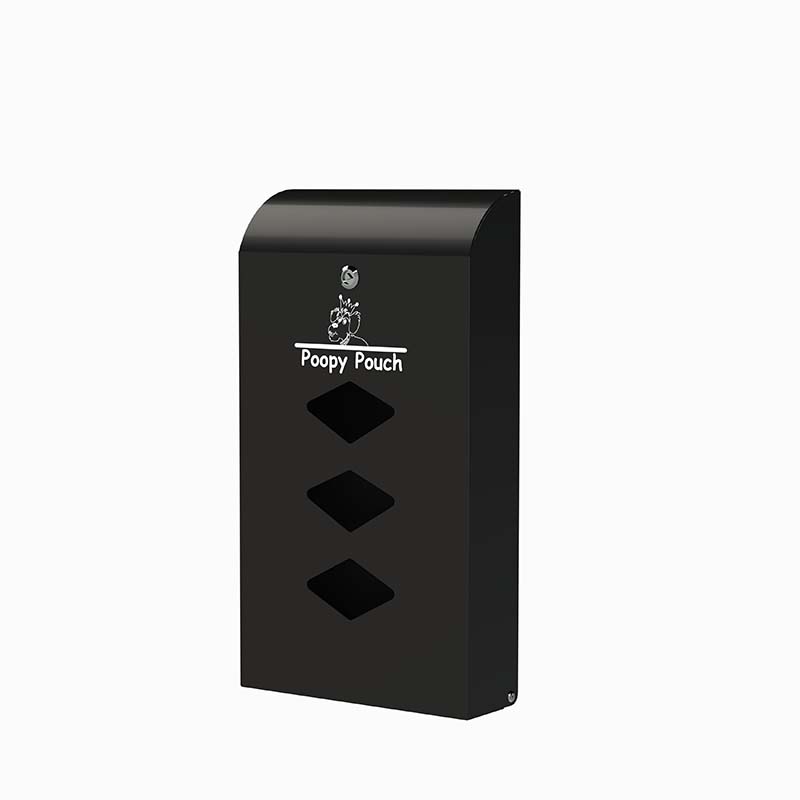 The Poopy Pouch Monarch Dispenser in black offers a universal solution for dispensing rolled pet waste bags packaged in a box. Designed to hold up to 600 universal bags, this dispenser is perfect for dog parks, apartment complexes, and other pet-friendly public spaces. Its durable, weather-resistant construction ensures long-lasting outdoor use, while the sleek black finish blends seamlessly into any setting.
