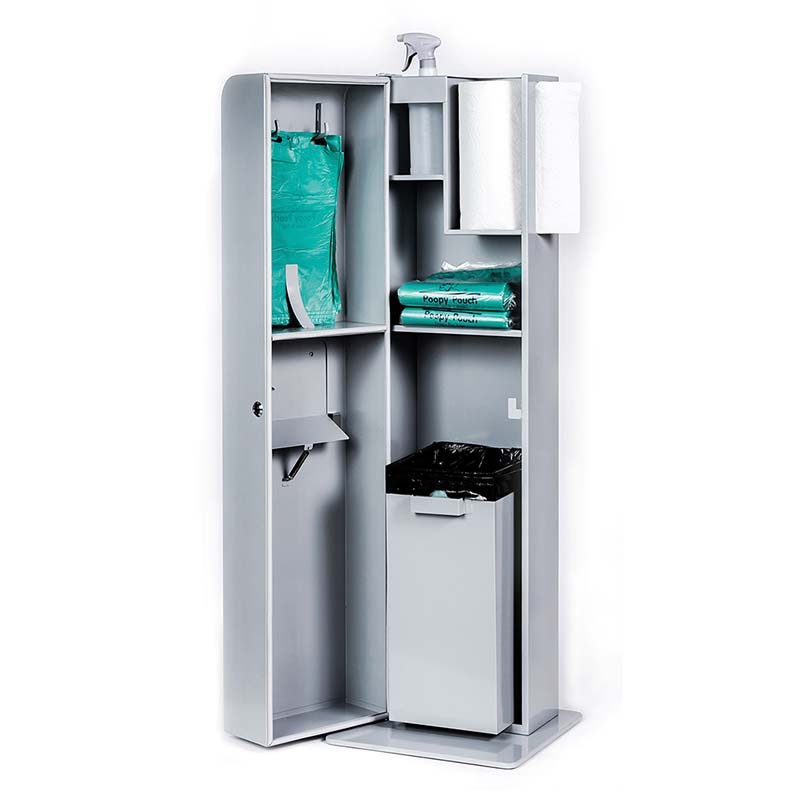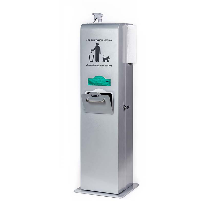 - This pet waste station helps keep your spaces clean and germ-free