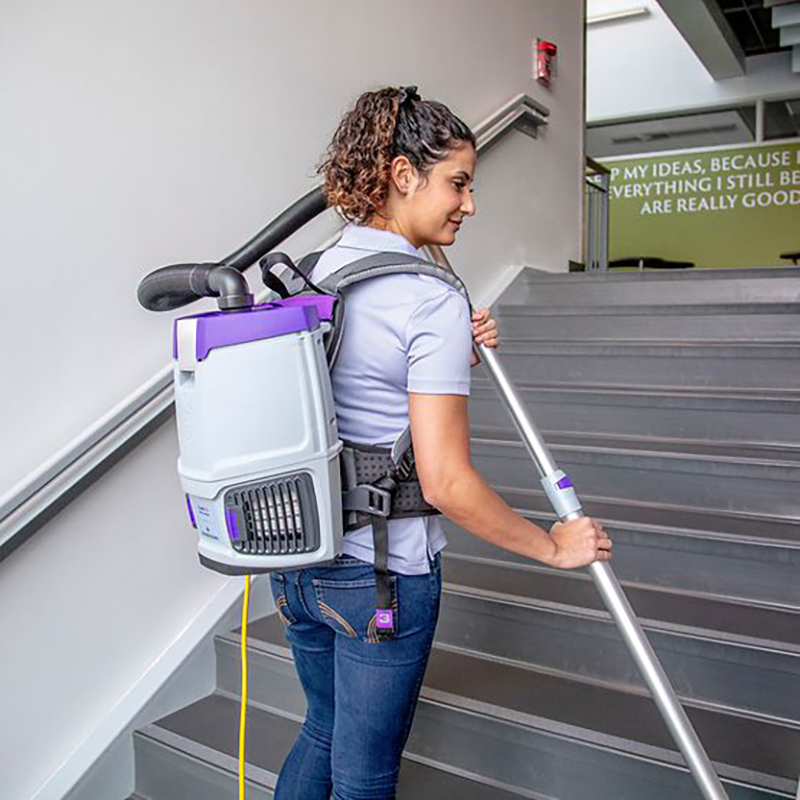 - Productivity — Cleans carpets and hard surfaces without stirring up dust, plus backpack vacuums are proven to clean more in less time and with less operator fatigue