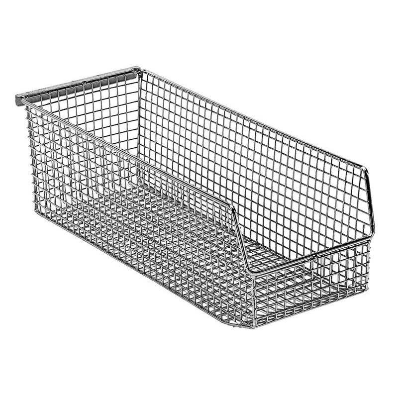 New patented Wire Mesh Bins are an industry exclusive. Our innovative mesh design offers a nickel-chrome finish and a 3/8” x 3/8” grid pattern allowing complete visibility of the bin’s contents. This unique mesh pattern provides a dust and dirt free storage environment. Ultra strong design allows for superior hang capacity perfect for IV fluid storage or anything where hang capacities are vital. Available in 9 popular sizes, Quantum’s Mesh Bins have a rear hanger that allows them to hang from any louvered wall panel or rail system. Optional side hangers (sold separately) allow bins stack one on top of the other. The open hopper design allows for easy picking while allowing visual access to stored contents. Two optional label holders are available for all Mesh Bins. Finish: Chrome