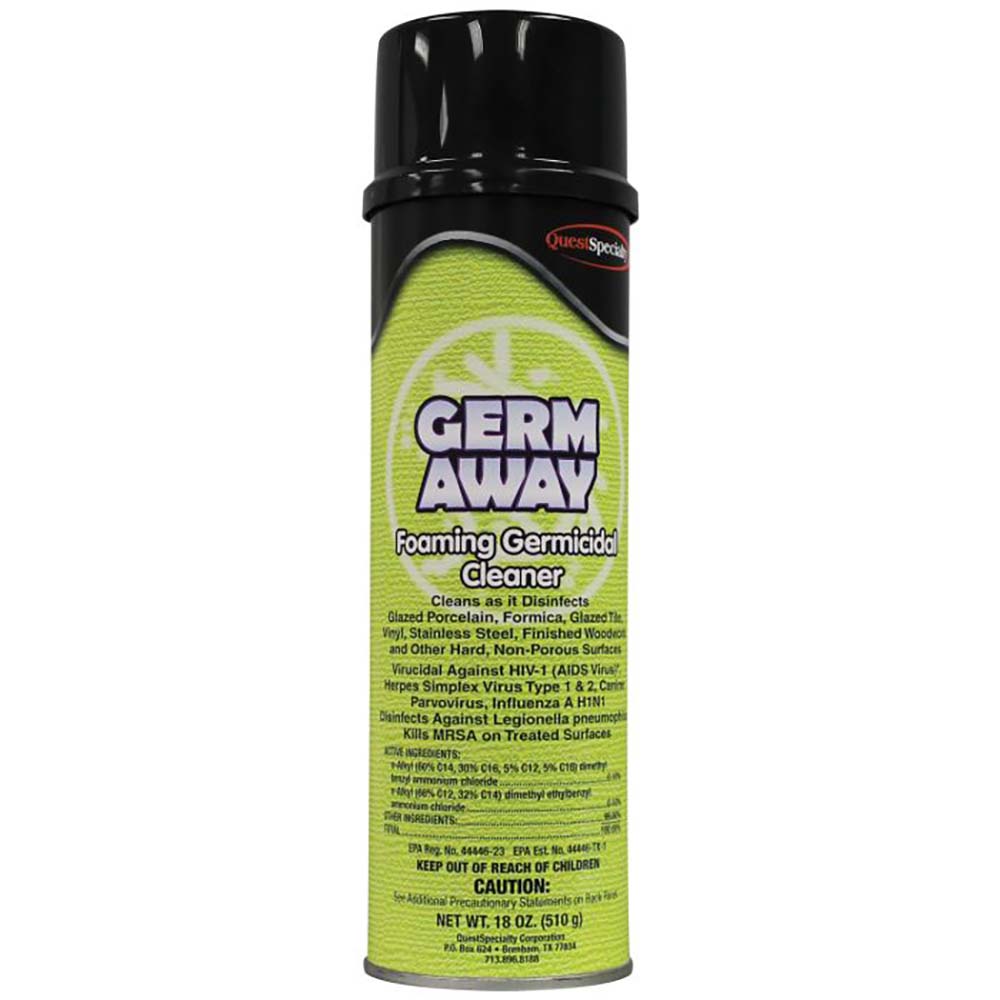 GERM AWAY is an EPA registered and USDA authorized foaming cleaner and germicide. This water based foaming aerosol combines butyl cleaners, surfactants and emulsifiers with a quaternary germicide to give heavy duty cleaning of all surfaces.