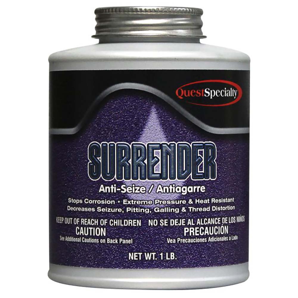 SURRENDER is a gray-black non-melt lubricant formulated to withstand high temperatures and pressures. This product is actually three useful maintenance compounds in one. It is effective as an anti-seize compound in extreme temperature conditions that range from -30 deg F and exceed 2200 deg F. It can be used as an anti-friction bearing and slide lubricant.