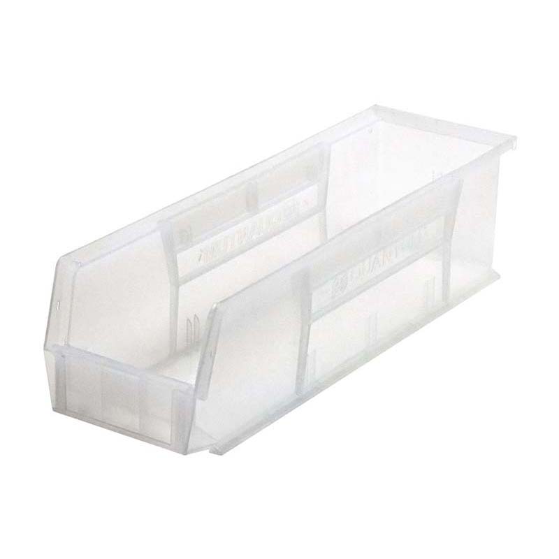The QUS238CL Clear-View Ultra Hang and Stack Bin can be used to organize your inventory and is made from injection molded tri-clear polypropylene.