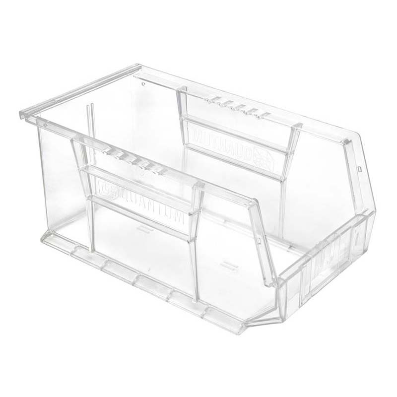 The QUS240CC Crystal Clear Ultra hang and stack bin is tough and durable. It can be used to organize your inventory and is made from injection molded FDA approved clear thermoplastic.