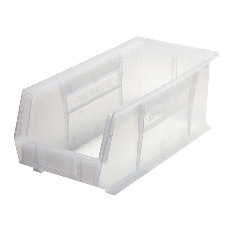 The QUS248CL Clear-View Ultra Hang and Stack Bin can be used to organize your inventory and is made from injection molded tri-clear polypropylene.