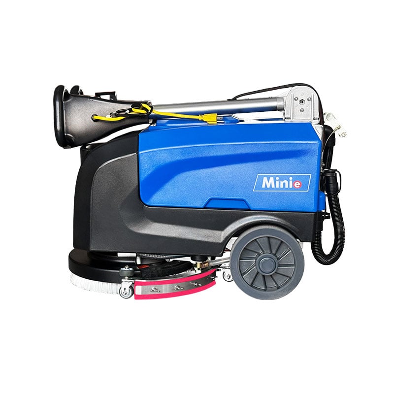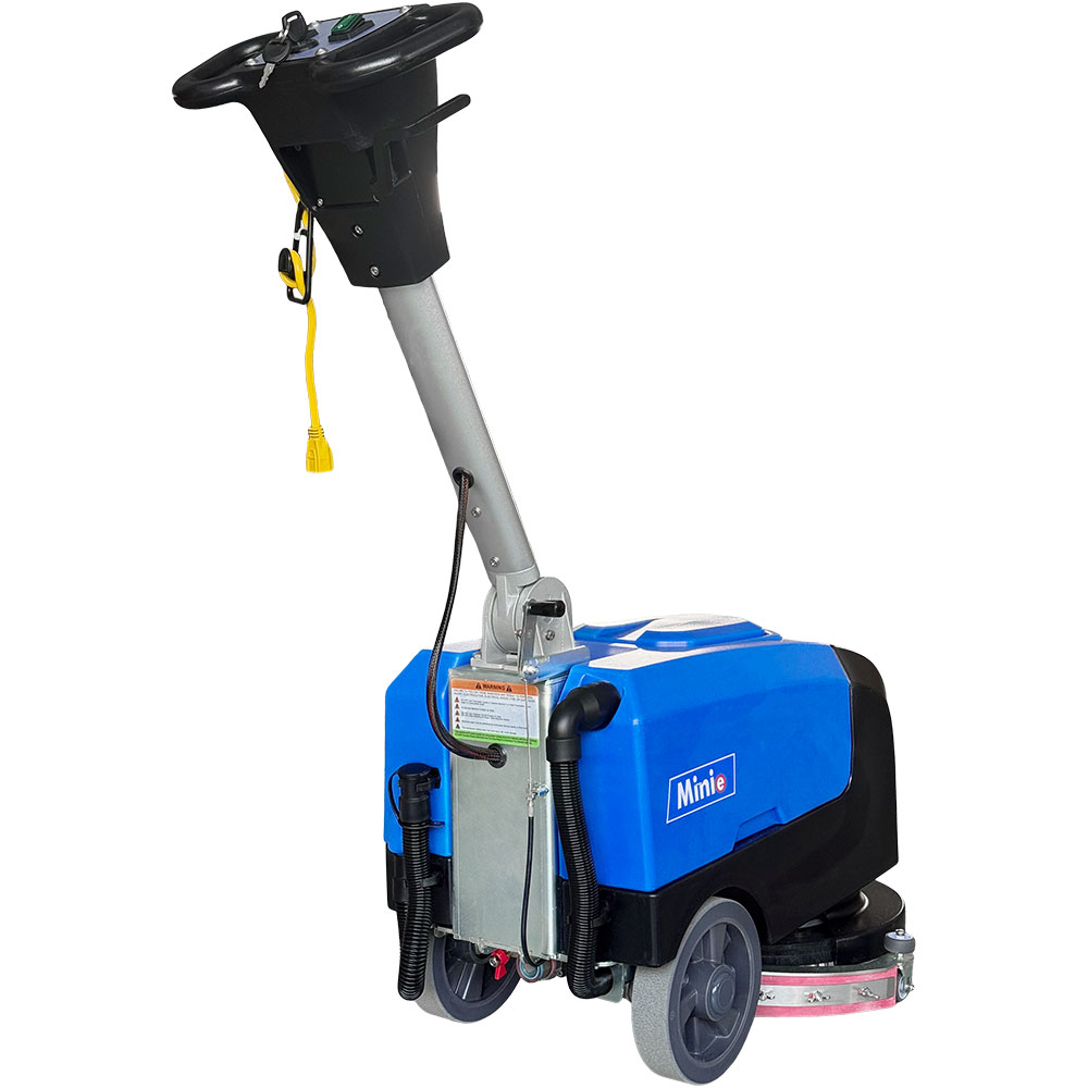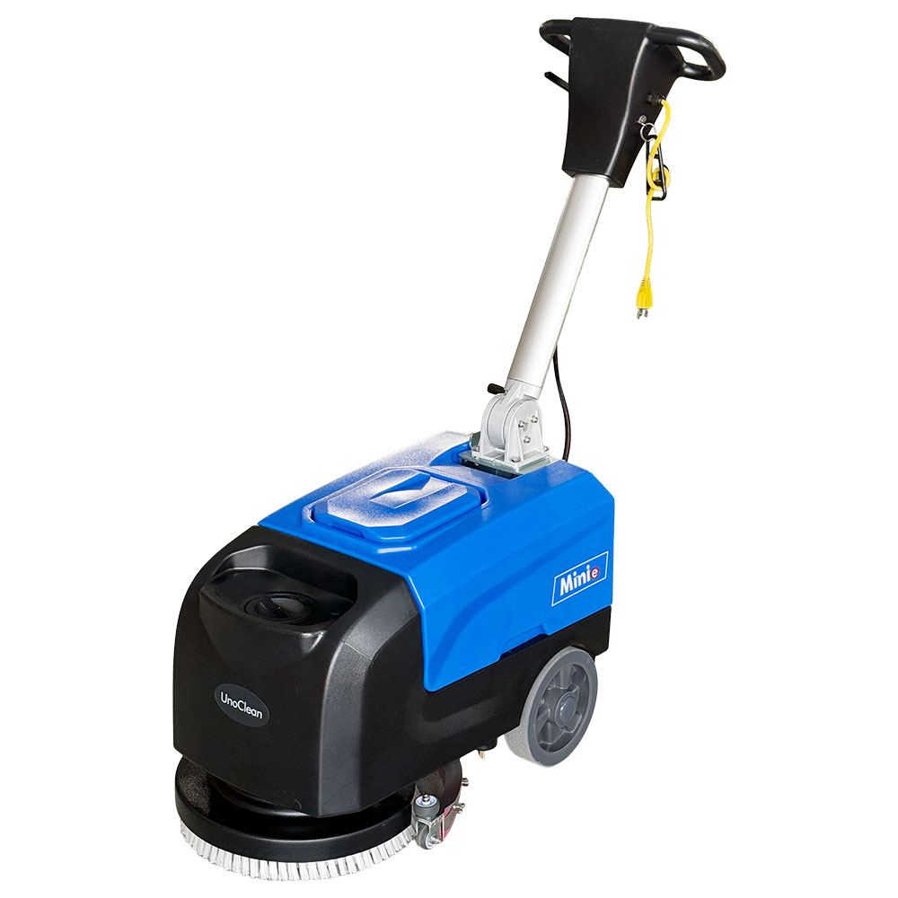 The UnoClean MINI-E Electric Floor Scrubber delivers powerful scrubbing performance in a compact footprint designed for tight and congested spaces. Operating on 120V electric power, this machine eliminates battery maintenance while providing consistent performance for daily cleaning.