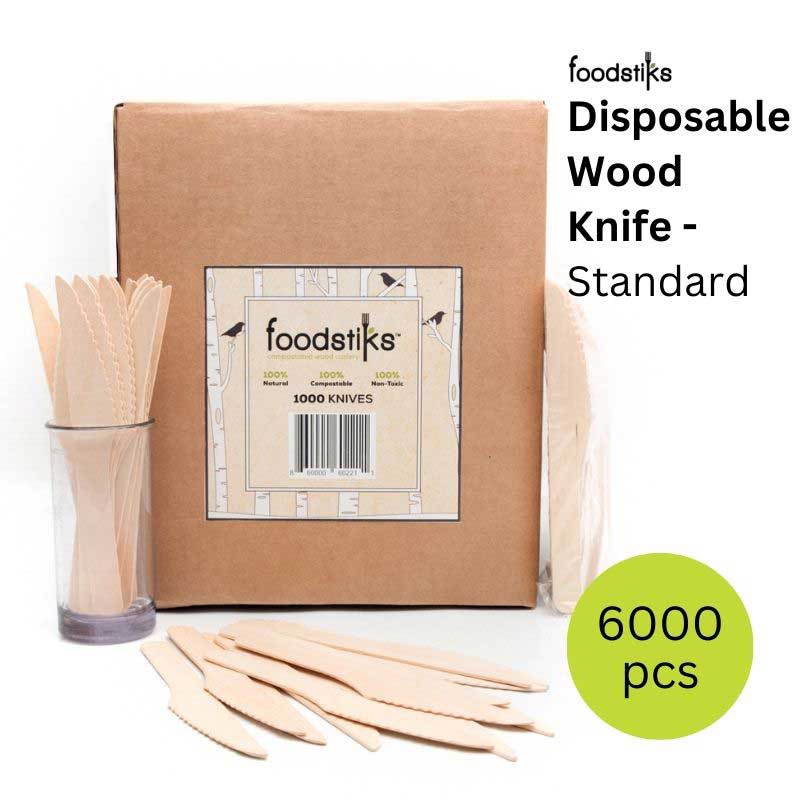 FOODSTIKS Compostable Wood Cutlery is an award-winning sustainable alternative to disposable plastic cutlery. 100% Natural, 100% Renewable and 100% (Backyard) Compostable. Our Foodservice packaging is ideal for any foodservice operator from food truck to multi chain. The case comes with 6 cartons at 1,000 pieces for a total of 6,000 pieces. Made exclusively from Natural Birch wood the cutlery will compost in any setting, even if inadvertently left at a park or the beach. Bring your sustainability on and show your customers that you care about our planet. 100% Sustainable - 100% Satisfaction!