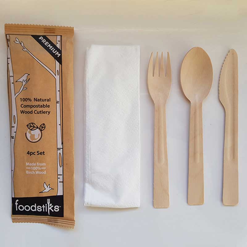 Foodstiks Compostable Cutlery 4 Piece Set Premium